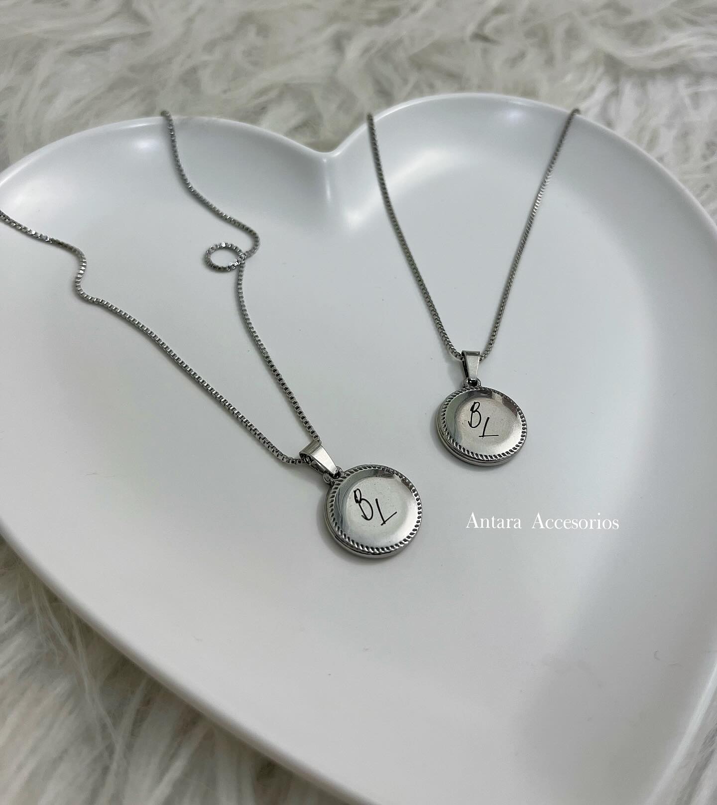 Cadena Box Chain con dije circular colgante, de acero inoxidable silver, waterproof (resiste al agua). Con personalización computarizada a laser.