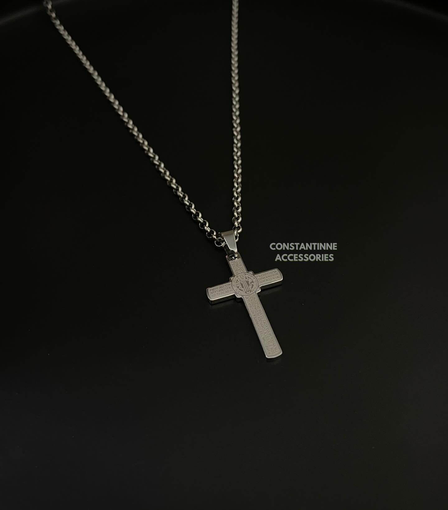 Cadena venenciana con dije colgante de cruz de San Benito en acero inoxidable waterproof (resistente al agua).