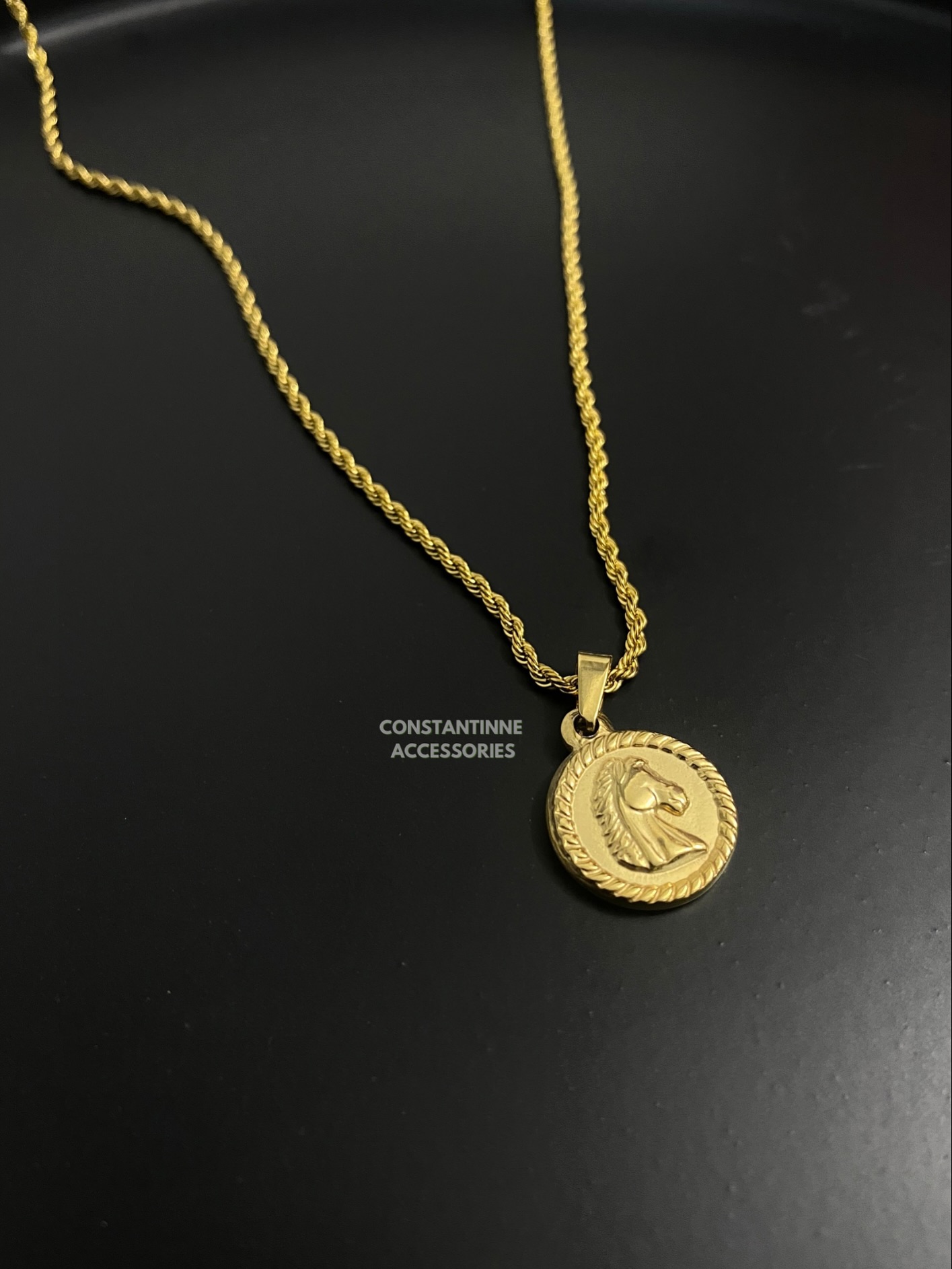 Cadena venenciana con dije colgante de caballo en acero inoxidable waterproof (resistente al agua).