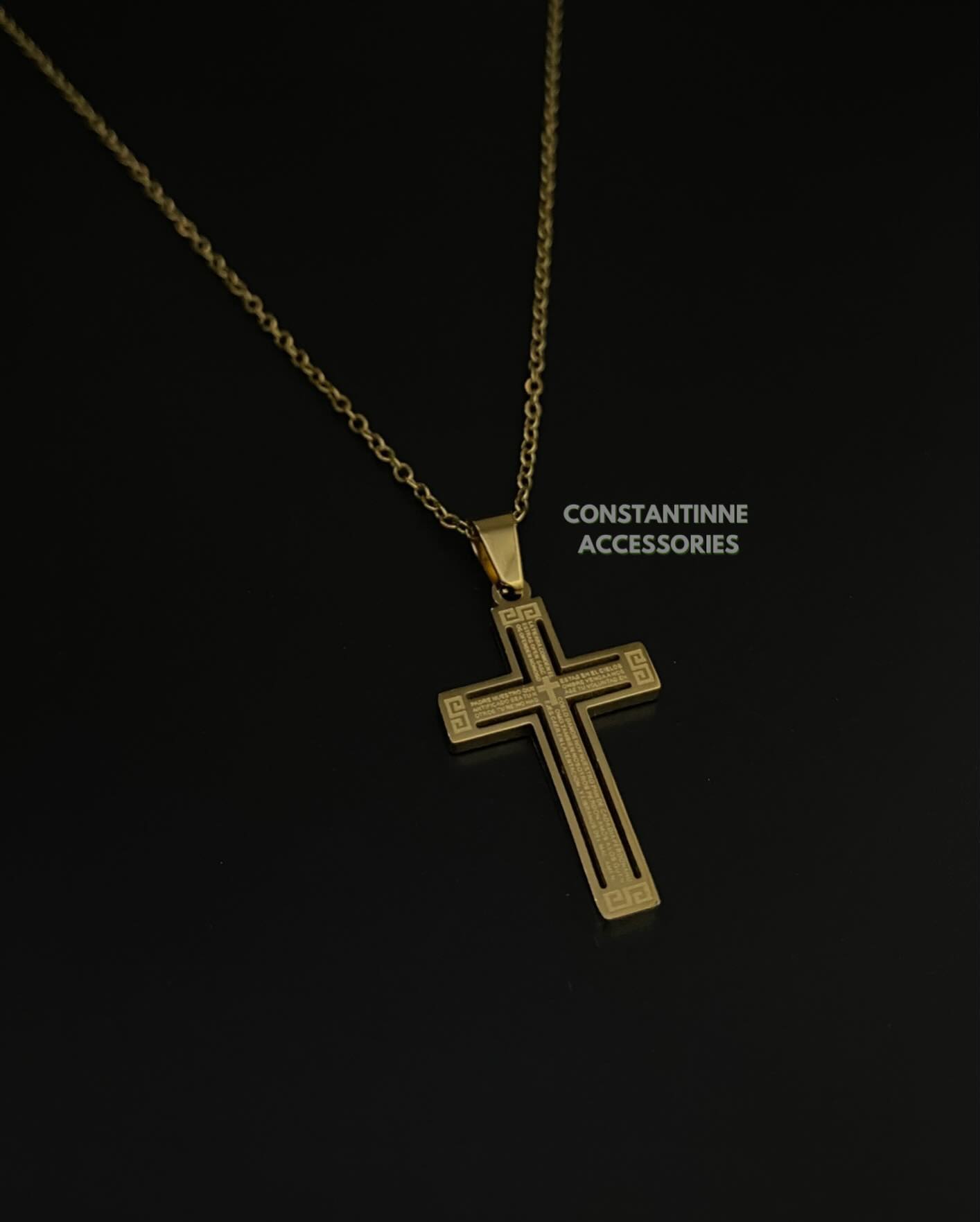 Cadena rolo con dije colgante en forma de cruz en acero inoxidable waterproof (resistente al agua).
