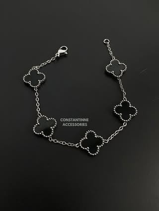 Pulsera forzada con dijes de tréboles de acero inoxidable.