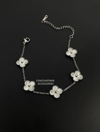 Pulsera forzada con dijes de tréboles de acero inoxidable.